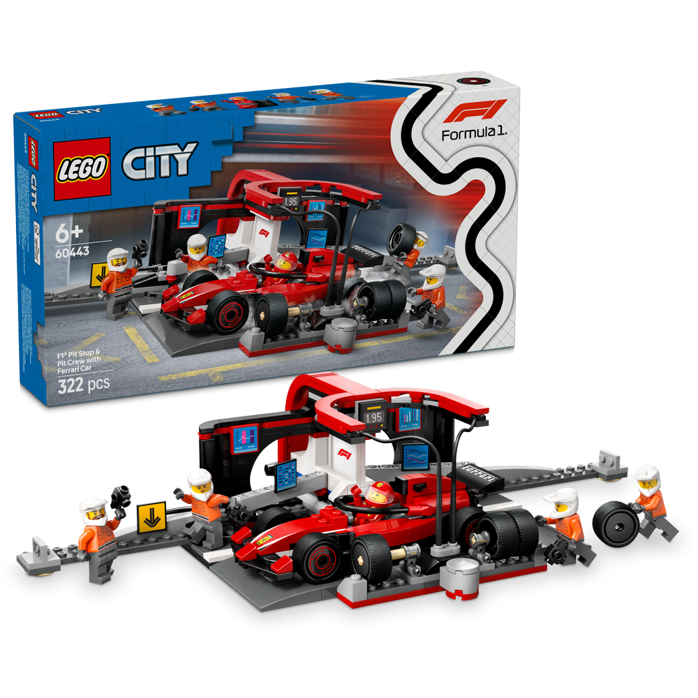 - LEGO® F1® vehicle toy – Bring the excitement of Formula 1® racing to kids’ play with the LEGO City F1 Pit Stop & Pit Crew with Ferrari Car set for ages 6 and over