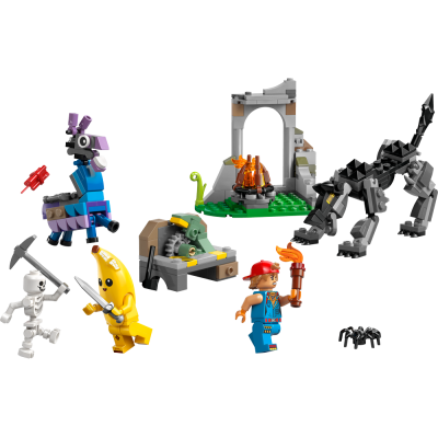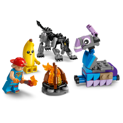 The playset replicates the first challenges players encounter in the LEGO Fortnite Odyssey video game, and boys and girls will have fun building the campfire, a workbench and ruins that can be deconstructed and reconfigured. It also features a Supply Llama figure and a wolf figure with a movable tail and legs. The action is brought to life by minifigures of Peely, Sparkplug and a skeleton, who come with weapon accessories to encourage imaginative role play.