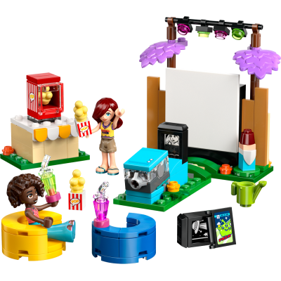 - 2 LEGO® Friends characters – This pretend-play toy comes with minidolls Paisley and Aliya, inspiring kids to create different social situations as the friends watch movies in Paisley’s garden