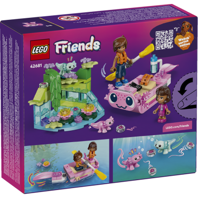 Encourage your little one to tell fun stories with the LEGO Friends Adventures on the Axolotl Boat (42681) set! The set includes 1 mini doll, 1 micro doll, 2 mini toy axolotls and accessories to stimulate creative play.