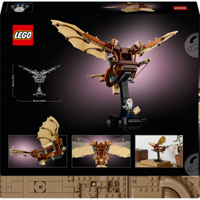 • What’s in the box – Everything you need to craft a detailed LEGO® interpretation of da Vinci’s visionary ornithopter, plus a display stand and a Leonardo da Vinci minifigure holding a quill and sketch