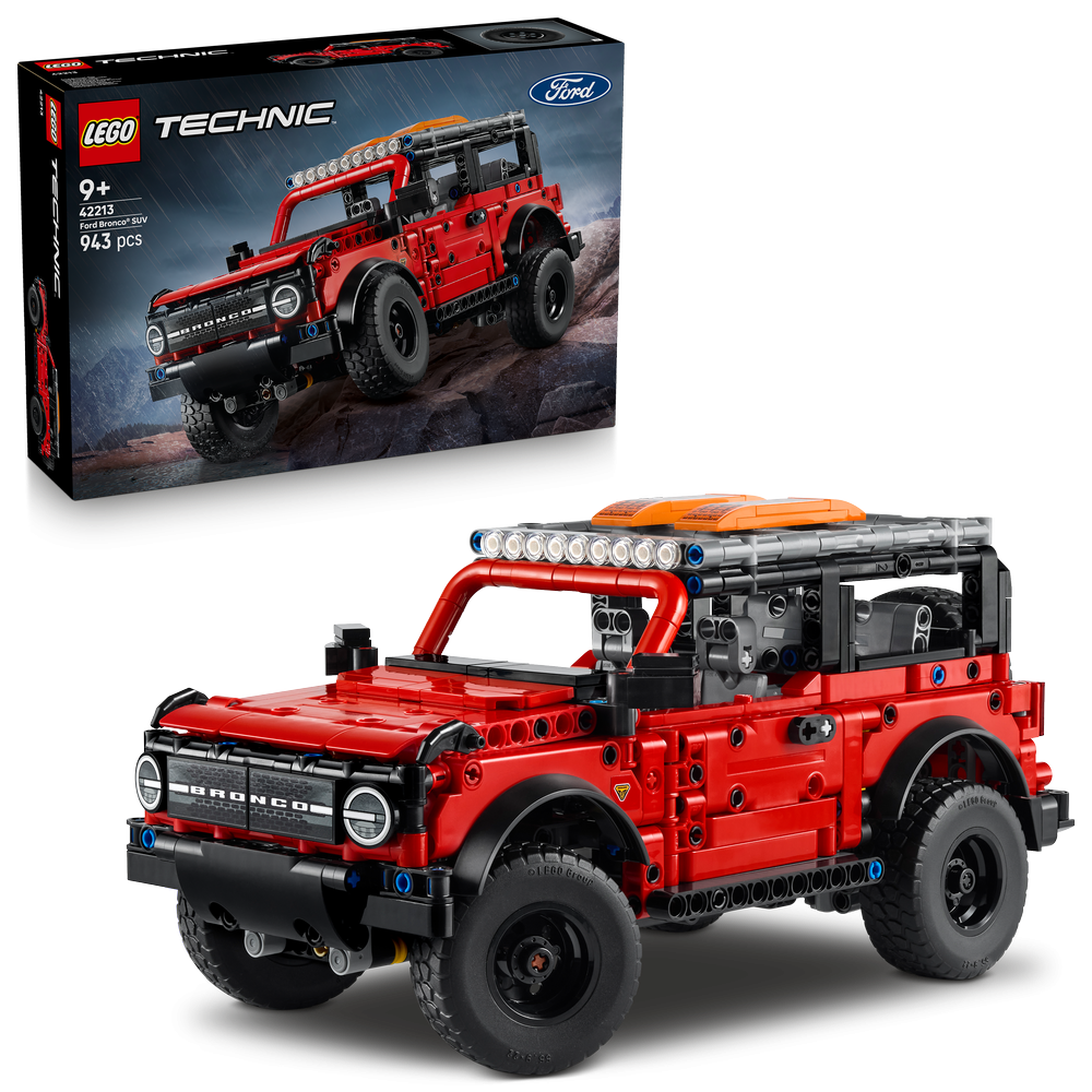 - Ford Bronco® model car kit – Inspire girls and boys aged 9 and up to create their own off-road stories with this LEGO® Technic™ Ford Bronco SUV building toy