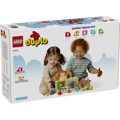 ¿Conoces a un bebé que adore los juegos de granja? El set Cuidado de Animales en la Granja (10416) es el regalo óptimo para jóvenes amantes de los animales. Este juguete de aprendizaje para bebés de 2 años o más incluye 8 figuras LEGO DUPLO de animales (como una oveja, una vaca, un caballo y pollitos) y entusiasmará a los peques que disfrutan con los juguetes basados en interpretar actividades de la vida real o haciendo amigos. El detallado juguete implica a toda la familia en el juego afectivo y permite a los papás y mamás enseñarle a su bebé a alimentar a los animales y cuidar de ellos. El granjero, en la casa de campo, ayuda a la figura del niño a lavar las manzanas para dar de comer a la vaca y el ternero. En el gallinero, la gallina cuida de sus pollitos. Los bebés también pueden imaginar que pasean a lomos del caballo y le dan heno en el establo. Este juguete educativo con ladrillos de colores desarrolla las habilidades motrices finas y de resolución de problemas.