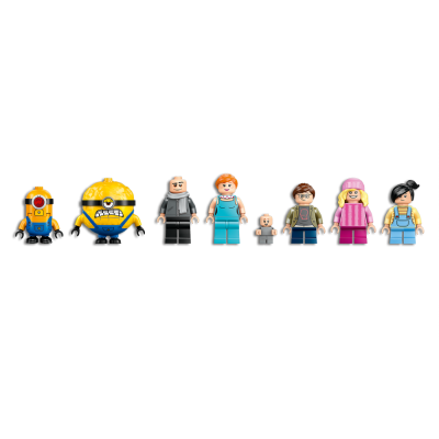 La icónica casa de Gru incluye el sofá rojo, la chimenea, el dormitorio con decoración inspirada en los cohetes, el laboratorio repleto de artilugios de los Minions y unidades giratorias que contienen objetos tales como un inodoro y una caja de galletas. Al lado de la casa de juguete está la colorida casa del árbol de las chicas, con un comedor en la copa desde el que sale una tirolina que llega hasta el espacio para fiestas (incluso hay bongós) y con un escondite bajo la plataforma decorado con flores, juguetes y velas. Trae 6 minifiguras LEGO: Gru, Lucy, Margo, Edith, Agnes y Gru Jr., además de 3 grandes figuras de Minions: Mel, Jerry y Tim. Este divertido juguete infantil es el regalo idóneo para niños y niñas de 9 años o más que disfruten construyendo casa de juguete y creando historias con sus Minions favoritos.