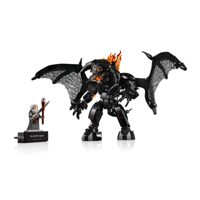 La maqueta, que lleva una placa con las palabras “You Shall Not Pass”, presenta a Gandalf el Gris firme y desafiante, sin miedo, y al Balrog con sus imponentes alas desplegadas ante un muro abrasador de llamas. La minifigura de Gandalf tiene un bastón y una espada, y la figura del Balrog empuña un látigo y posee alas y extremidades articuladas.