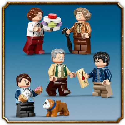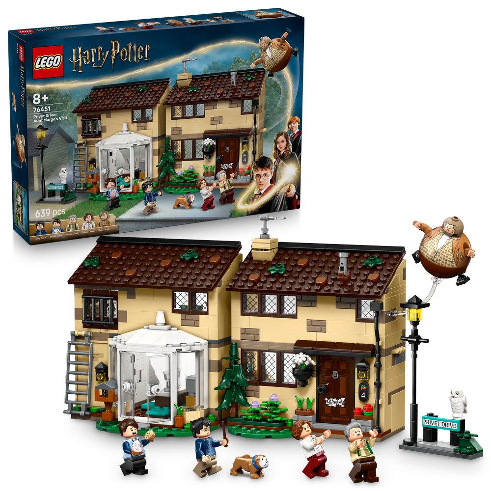 "Revive la visita de tía Marge al número 4 de Privet Drive en Harry Potter y el prisionero de Azkabán con este set de la colección LEGO Harry Potter (76451). La casa de juguete construible es una recreación del hogar de la familia Dursley que cuenta hasta con la terraza interior y que se abre para jugar cómodamente dentro. Hay una mesa en la cocina comedor, una puerta secreta en la parte trasera que da a la antigua habitación de Harry en la alacena bajo las escaleras, barrotes que se quitan en la ventana del dormitorio de Harry de la planta superior para recrear su huida y más detalles que fomentan el juego de rol. Un mágico regalo de cumpleaños para niñas, niños y fans a partir de 8 años, el set incluye 5 minifiguras LEGO Harry Potter y una figura del perro Ripper, así como una figura de tía Marge hinchada para interpretar la divertida escena en la que Harry lanza un hechizo para inflarla como un globo, además de un modelo complementario con una farola y una señal con el nombre de la calle."